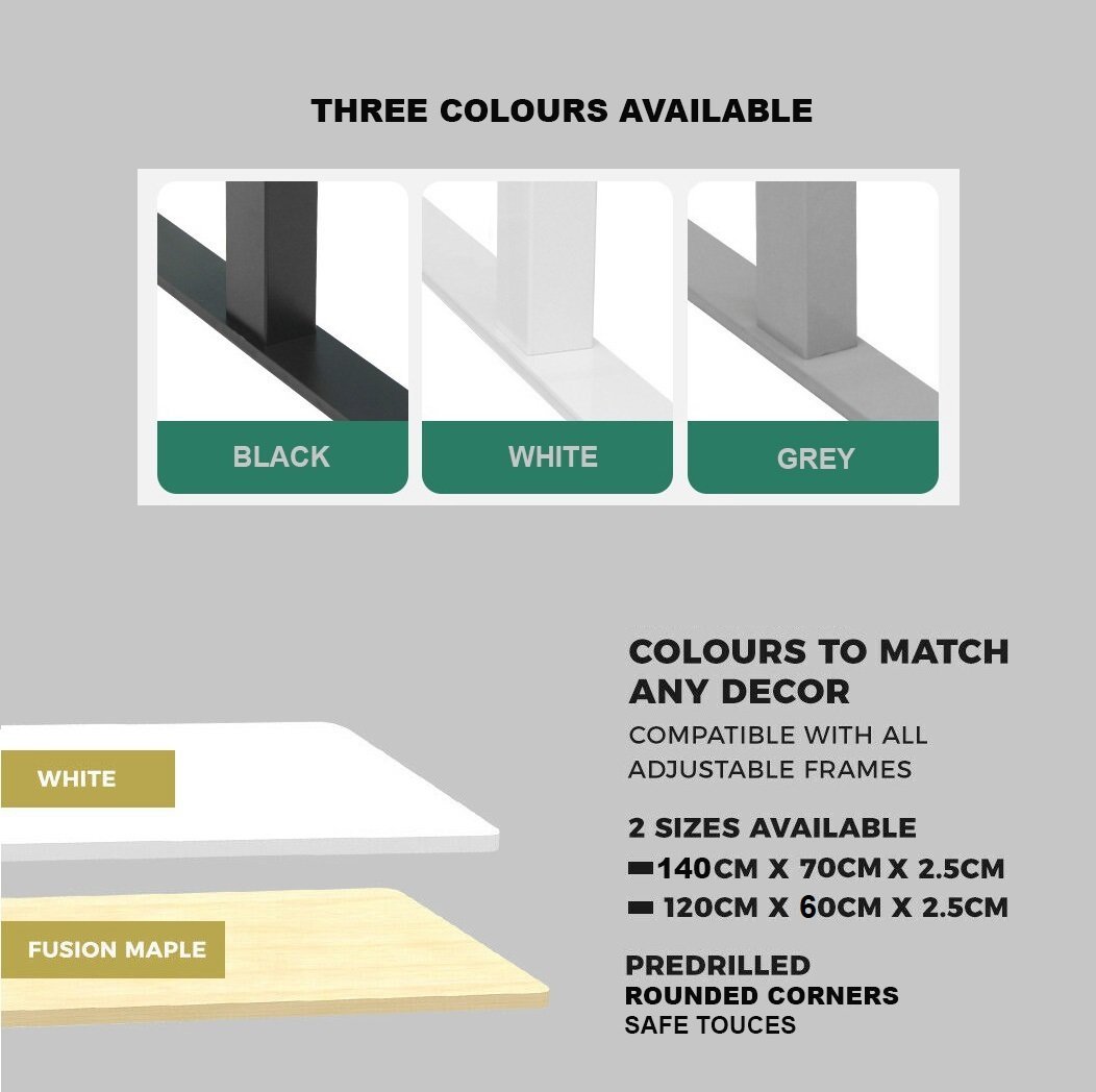 140cm Standing Desk Height Adjustable Sit Stand Motorised White Dual Motors Frame Maple Top