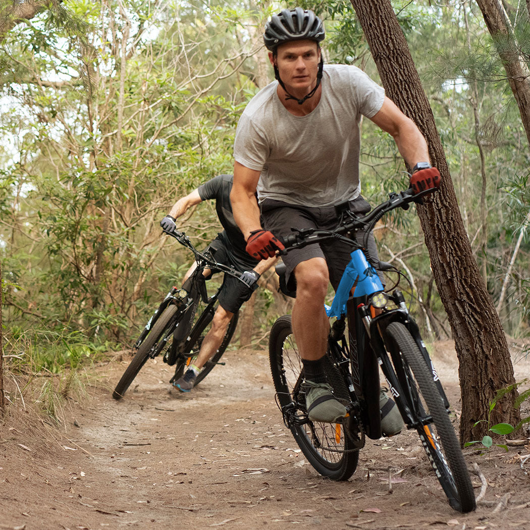 The MX7 series e-MTB comes equipped with Shimano 7-speed SIS-Index gears and derailleur, and a high performance VELO saddle. Front and rear disc brakes and low-profile dual rubber compound 27.5" Maxxis Pace tyres offer serious control.