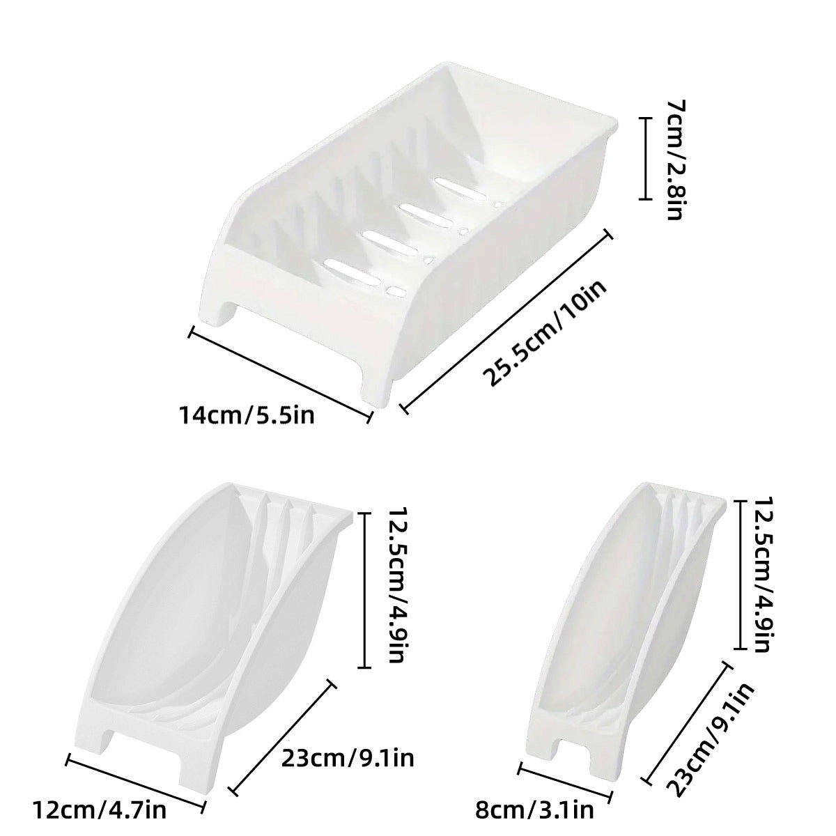 Maximise your kitchen storage with this 3-piece dish drying rack set. Designed to keep your plates, bowls, and dishes dry and neatly organised, these racks feature sturdy, thickened plastic with evenly spaced slots to secure your items. The elevated design promotes ventilation for faster drying and helps prevent bacterial growth. Ideal for use in built-in cabinets or on countertops, this set ensures a clean and tidy kitchen while optimising your space.