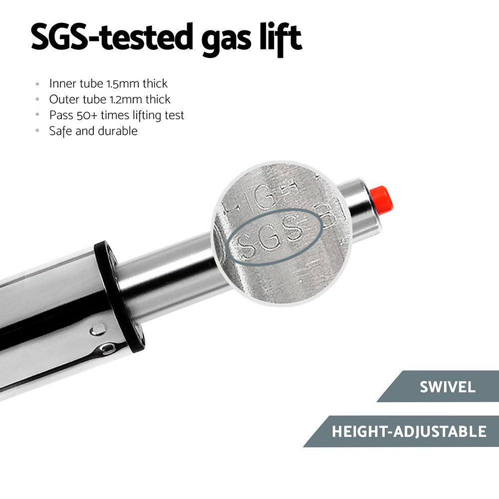 The Artiss 1x Leather Bar Stools combine modern functionality with enduring comfort for kitchen islands, breakfast bars, or entertainment spaces. Featuring luxe PU leather upholstery over plush foam padding, these swivel bar stools with full backrests provide all-day seating comfort. The SGS-certified gas lift lever allows effortless height adjustment, while the 360-degree rotation ensures easy mobility. Built with a corrosion-resistant chrome steel frame and stabilising base, these counter-height stools safely support up to 150kg. Complete with protective floor pads and tool-free assembly, they seamlessly blend durability with contemporary style in sleek black.