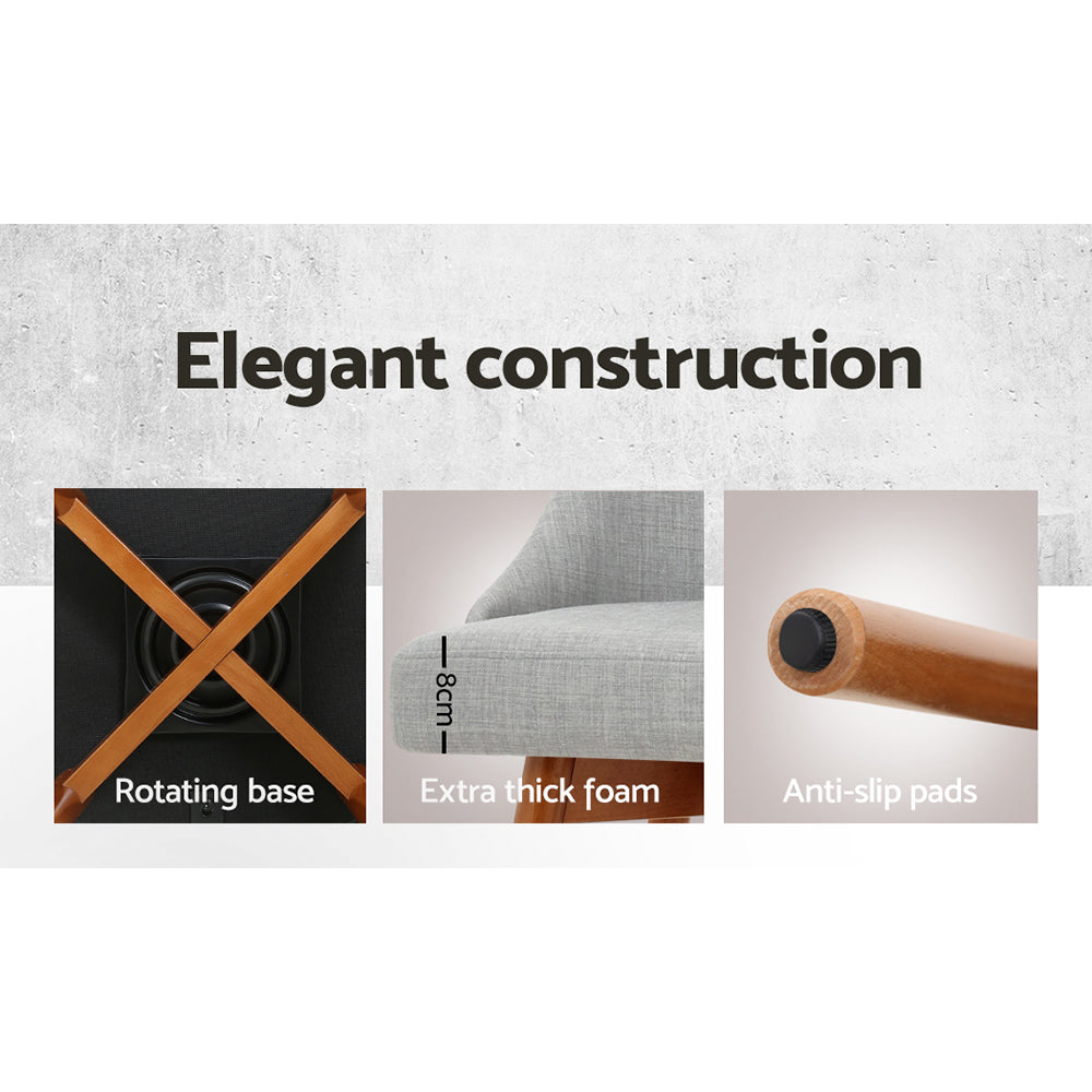 Artiss 2x Bar Stools Swivel Seat Wooden Grey