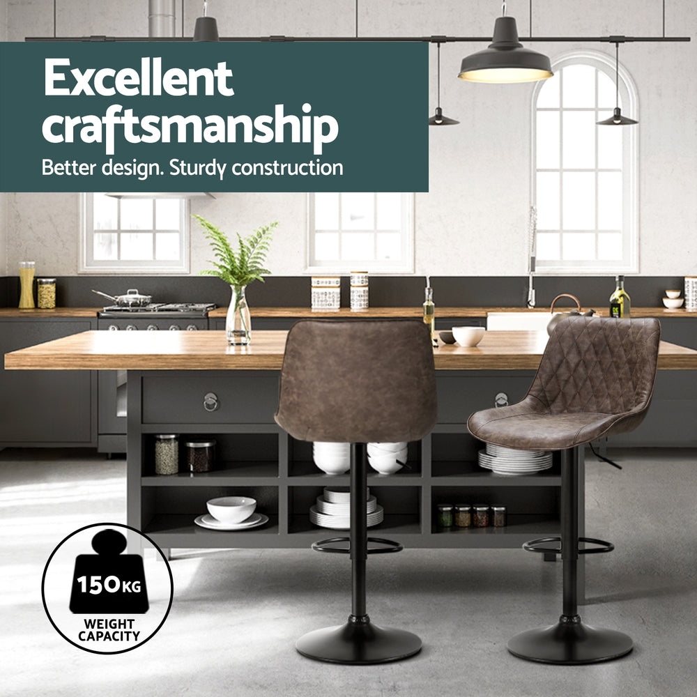Not an ordinary piece of furniture but stands out in every aspect, whether it's craftsmanship, style, upholstery, comfort, or quality that speaks for itself. If you're after achieving an elegant vintage yet contemporary feel in your space, our Artiss' Rushal bar stools with an elegant back and seat design are just perfect. They're great for catchups over coffee with friends, a jam session with the band, or daily living. Our bar stools are uniquely designed that will make you want them in your space. You can style our Rushal bar stools anywhere, from living rooms to kitchen and the bar section, they will effortlessly fuse in any décor and lend an elegant vintage feel to your space. These bar stools can even be used as an impromptu seat when you need extra sitting space. Featuring an elegant diamond back design with beautiful PU vintage leather upholstery, our bar stools have thick foam soft padded seats, sturdy powder-coated pedestal base, adjustable height with SGS-tested gas lift, and floor protector for ultimate stability and scratch-free floors. Their solid structure ensures longlasting use and superb durability. They also feature 360 degree rotatable seat so you can face any direction for ease of conversing with guests and family. Our Rushal bar stools make a timeless piece of furniture, and with two colour options, you can choose that best complements your space and suits your taste. Artiss' Rushal bar stools would make a gorgeous addition to your space. Shop them today!