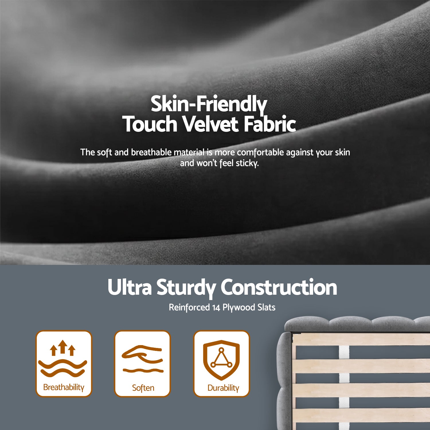 Artiss King Size Bed Frame Plush Soft Headboard Velvet Platform Base for Modern Bedrooms Grey