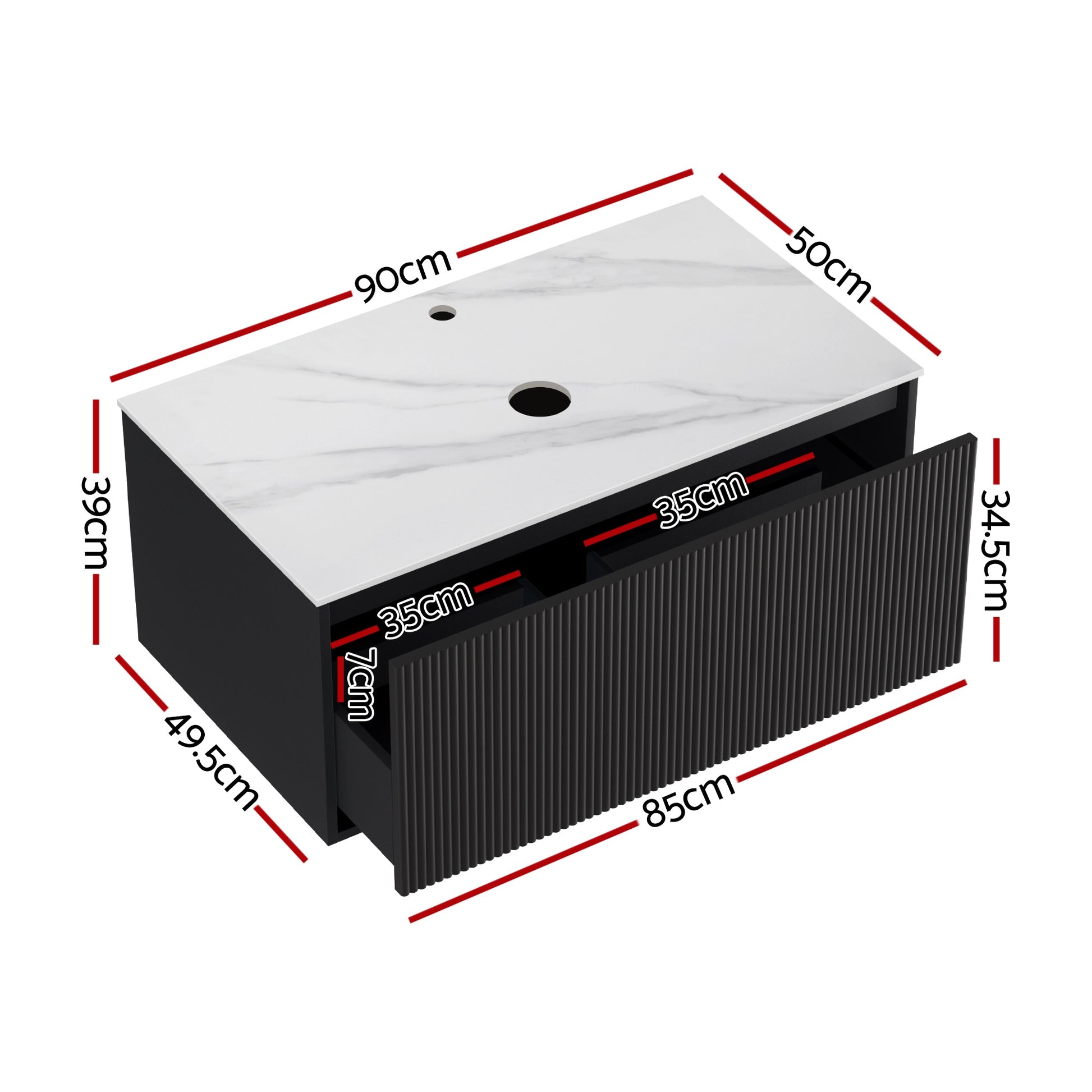Cefito Vanity Unit 900mm Bathroom Cabinet Storage Wall Hung Grooved Timber Black