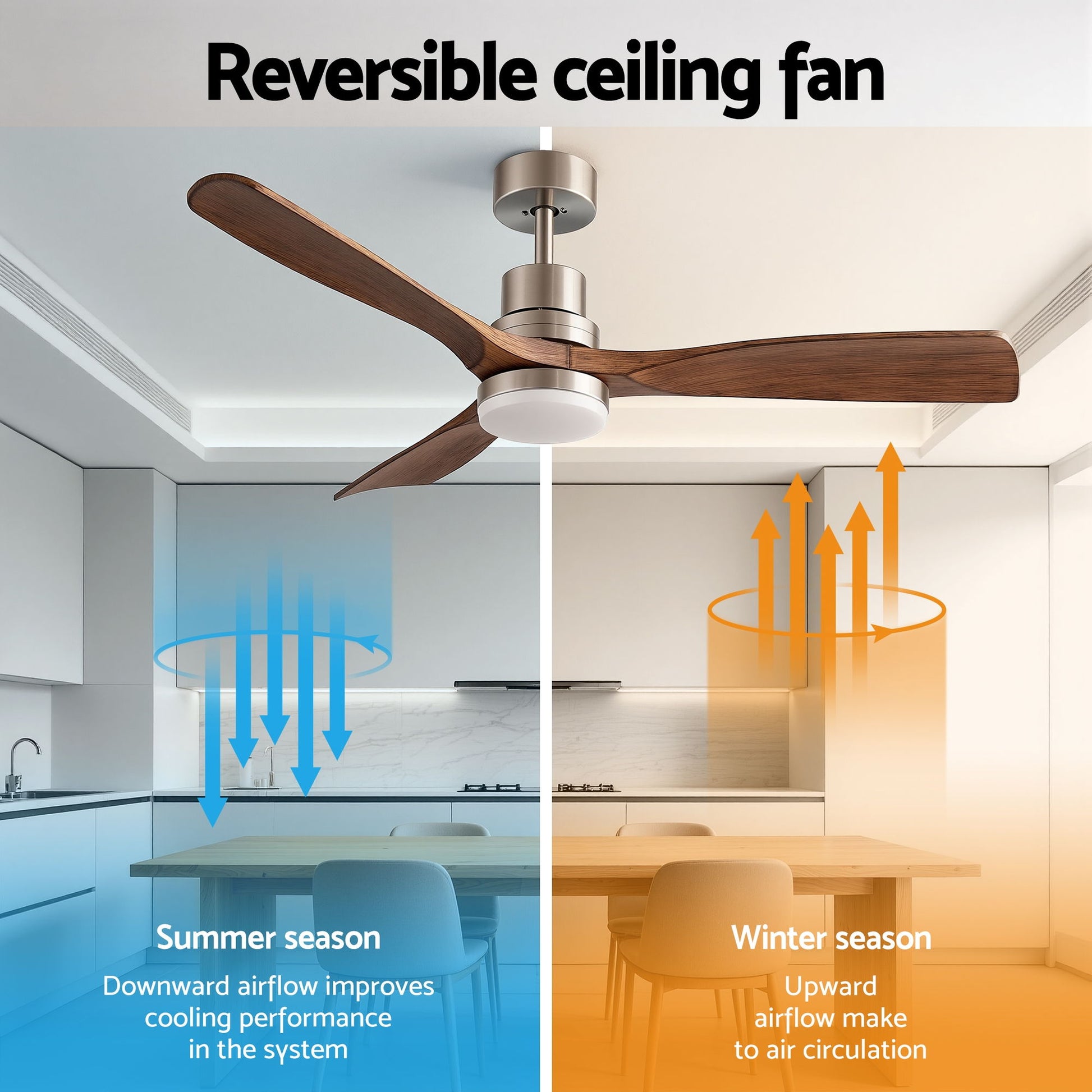 Upgrade your comfort with the Devanti 52" Smart Ceiling Fan. Powered by an energy-efficient, whisper-quiet DC motor, it features 6 speeds and reverse cycle airflow for year-round use. Control the 3-colour LED light and 6-hour timer effortlessly via the Remote or Smart WiFi App. Suitable for indoor and undercover outdoor spaces, this modern fan includes an extension rod for versatile installation. Smart, stylish, and silent.