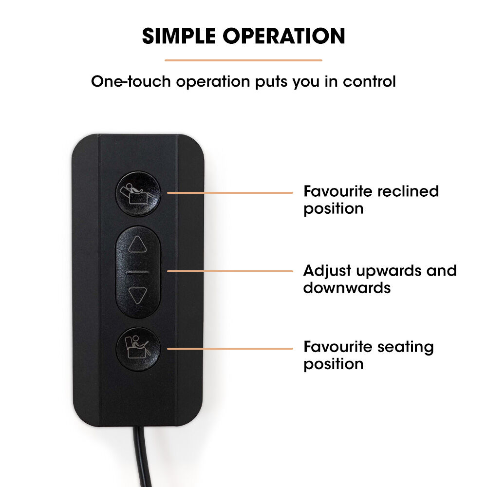 A simple wired remote lets you find your perfect setting and even save up to two positions for quick access. Whether you're unwinding after work or enjoying your favourite show, the FORTIA Recliner adapts to your comfort needs with ease.