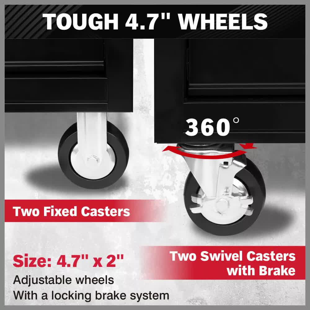 Heavy-Duty Casters: Equipped with 4.7-inch wheels, including 2 fixed casters and 2 swivel casters with brakes, for easy mobility and secure positioning.