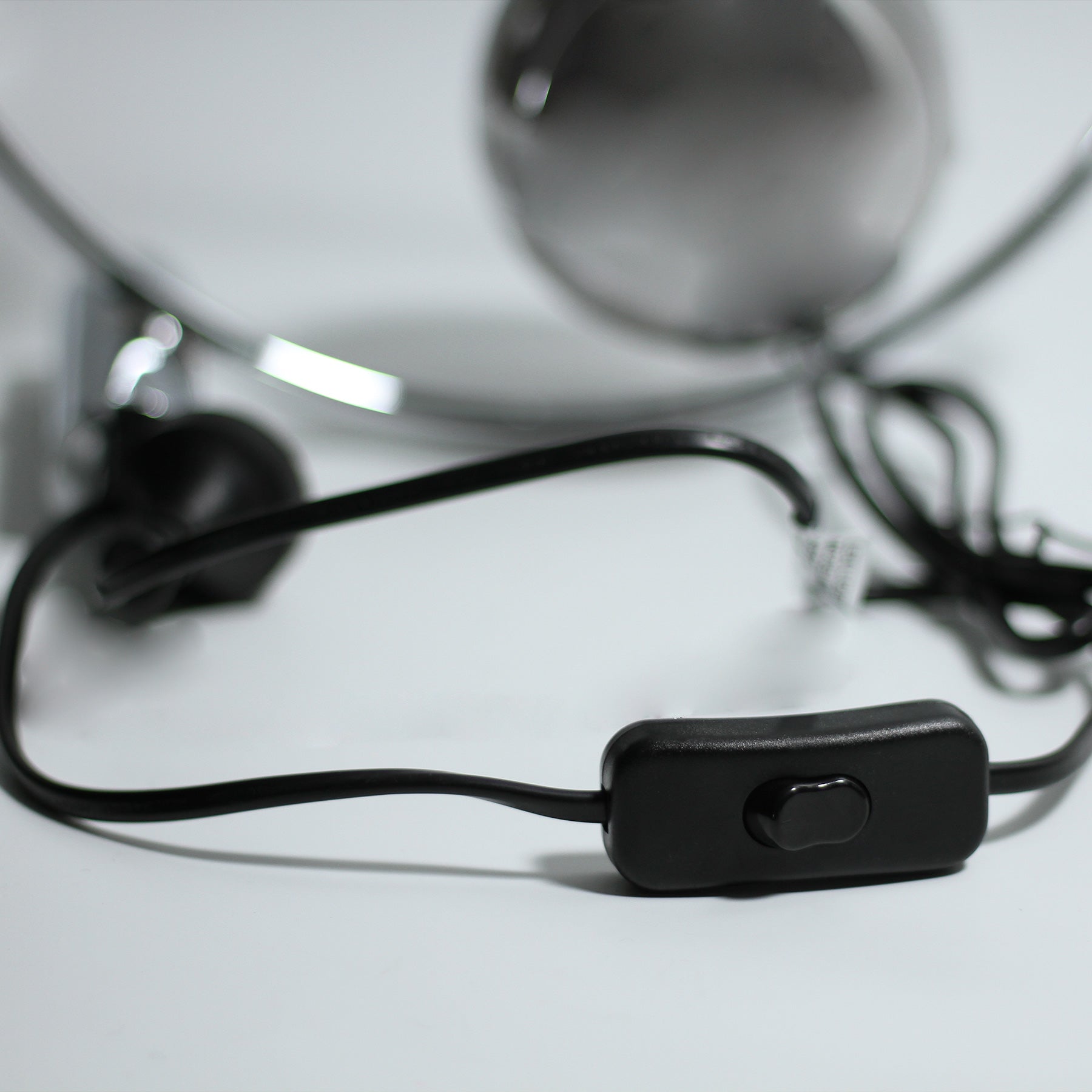 The Larique Table Lamp is a stunning chrome lighting piece that is artistically designed with style. The spectacular round metal frame is balanced with a short horizontal support rod that adds to the aesthetic of the lamp, while the two sphere glass shades finish it off to perfection.