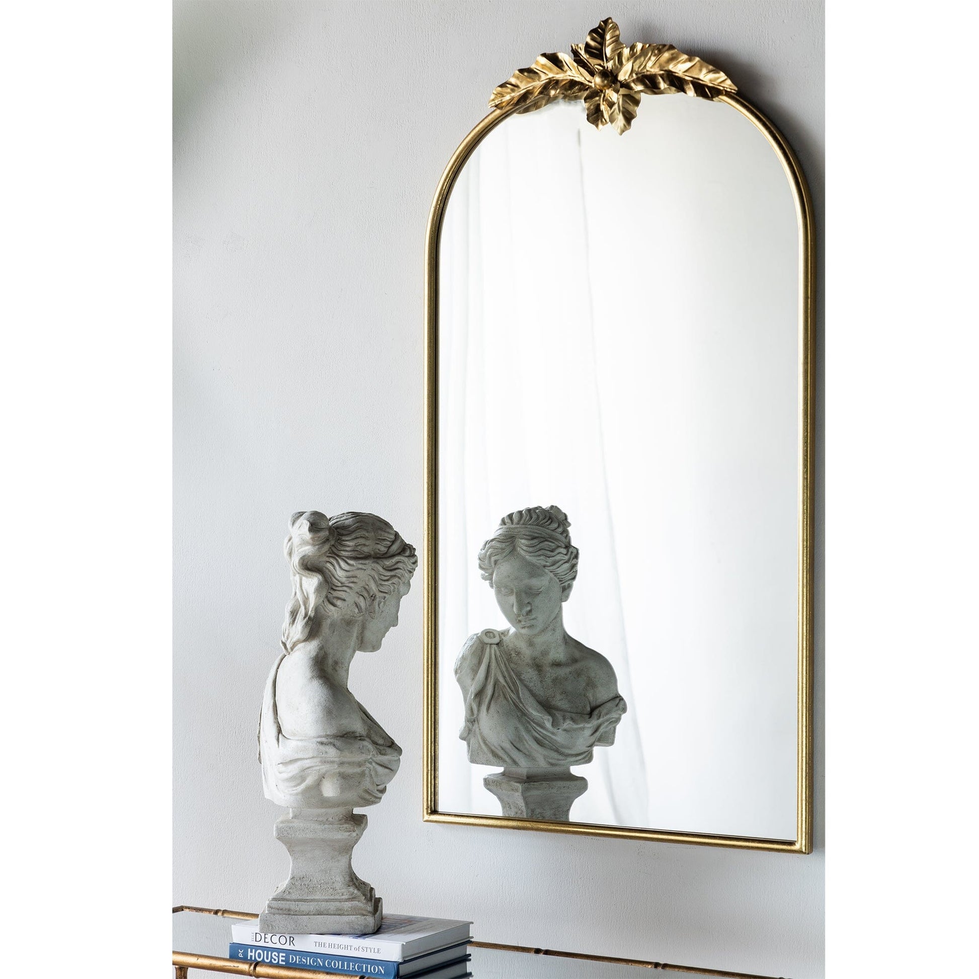 The MARION TALL GOLD WALL MIRROR adds a touch of elegance to any wall. Crafted in luxurious gold-toned metal, this chic mirror reflects light, creating an air of sophistication that enlivens any space. Place this sophisticated piece in any room to instantly elevate its style.