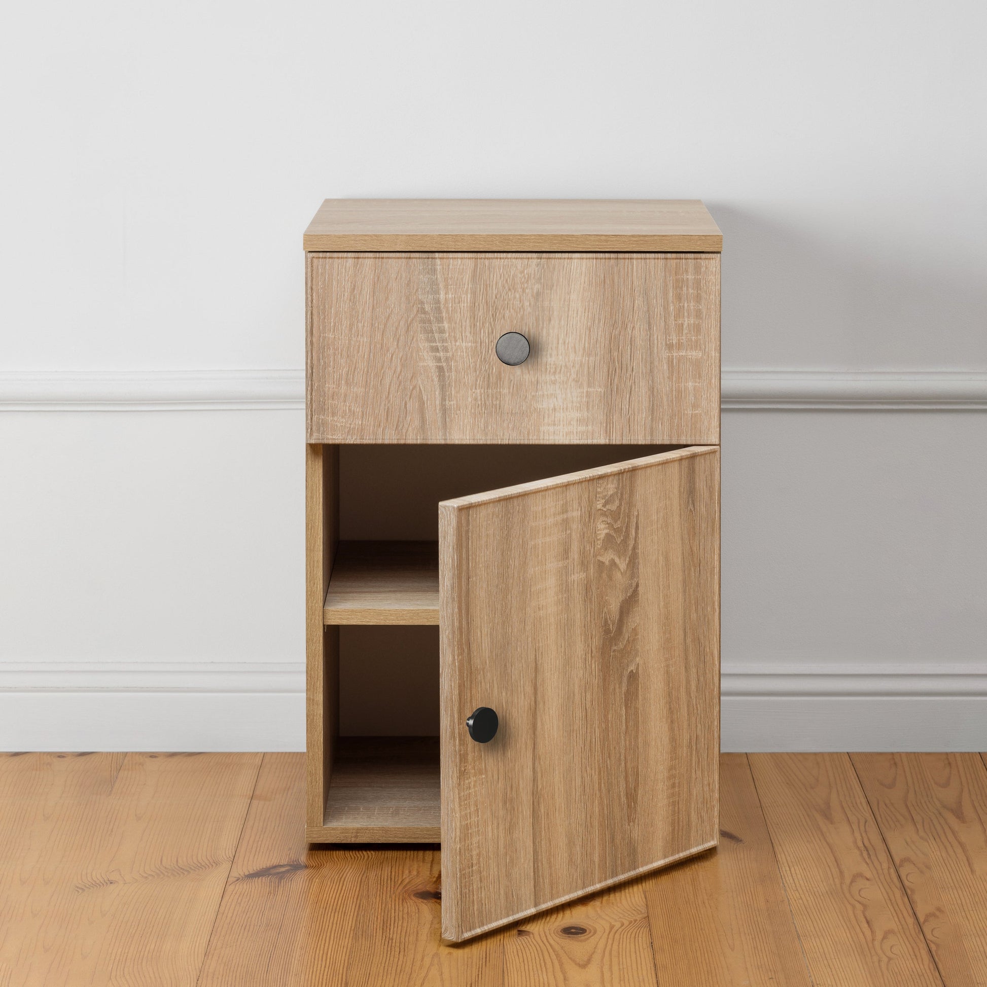 PORTO BEDSIDE TABLE - NATURAL OAK - SLIM - ROUND BLACK