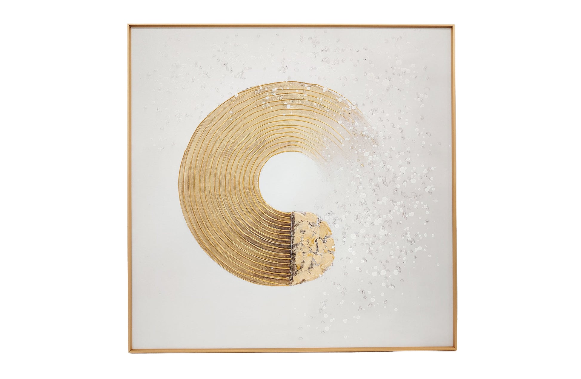 The Spiral Wall Art features a captivating spiral design in rich gold, creating a sense of movement and depth. The matching gold frame enhances the overall aesthetic, adding a refined and polished touch to the piece. Its luxurious tone and modern design make it perfect for a variety of settings, from living rooms to offices, bringing warmth and elegance to your décor.