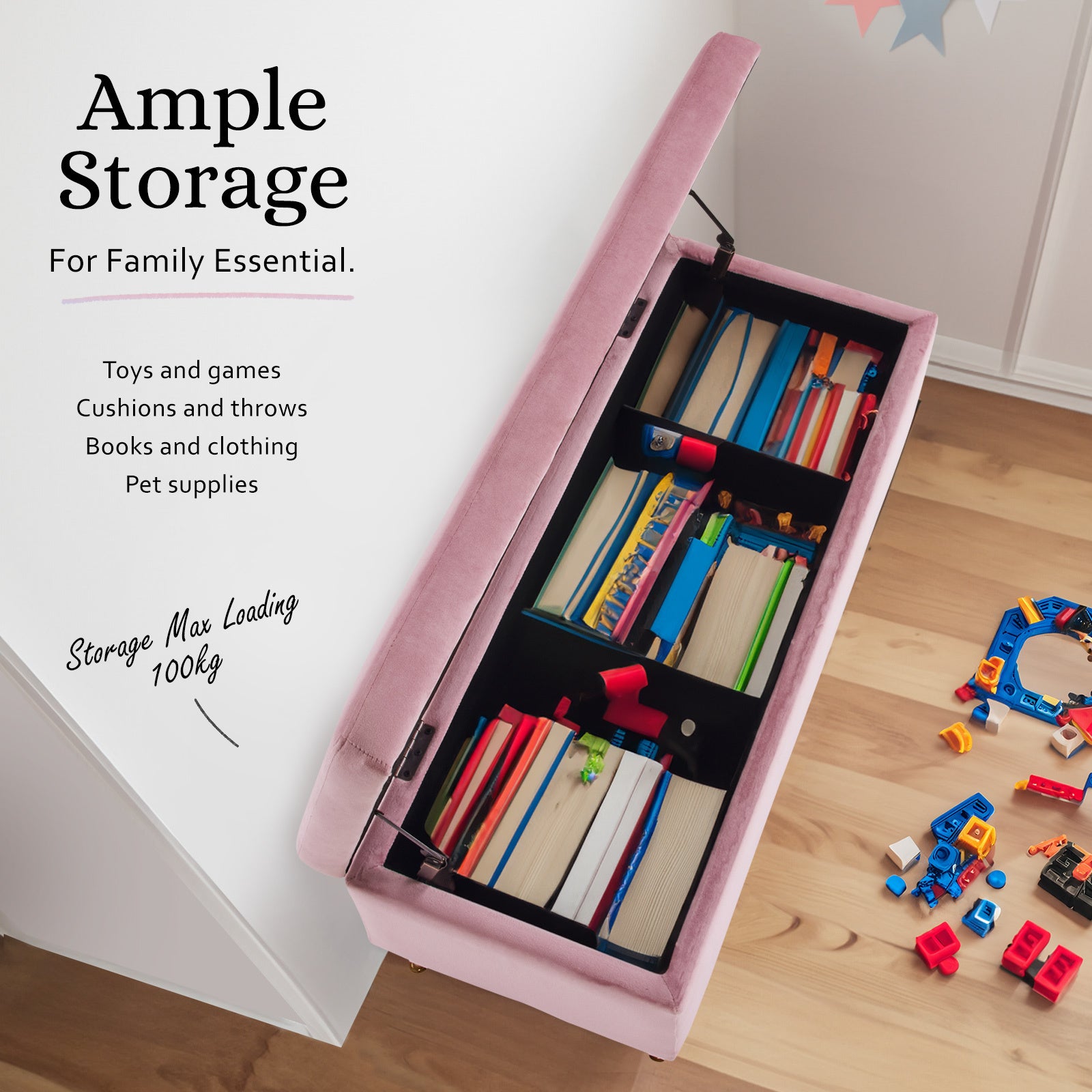 Storage Ottoman Stool Bench Seat 110cm Velvet PINK