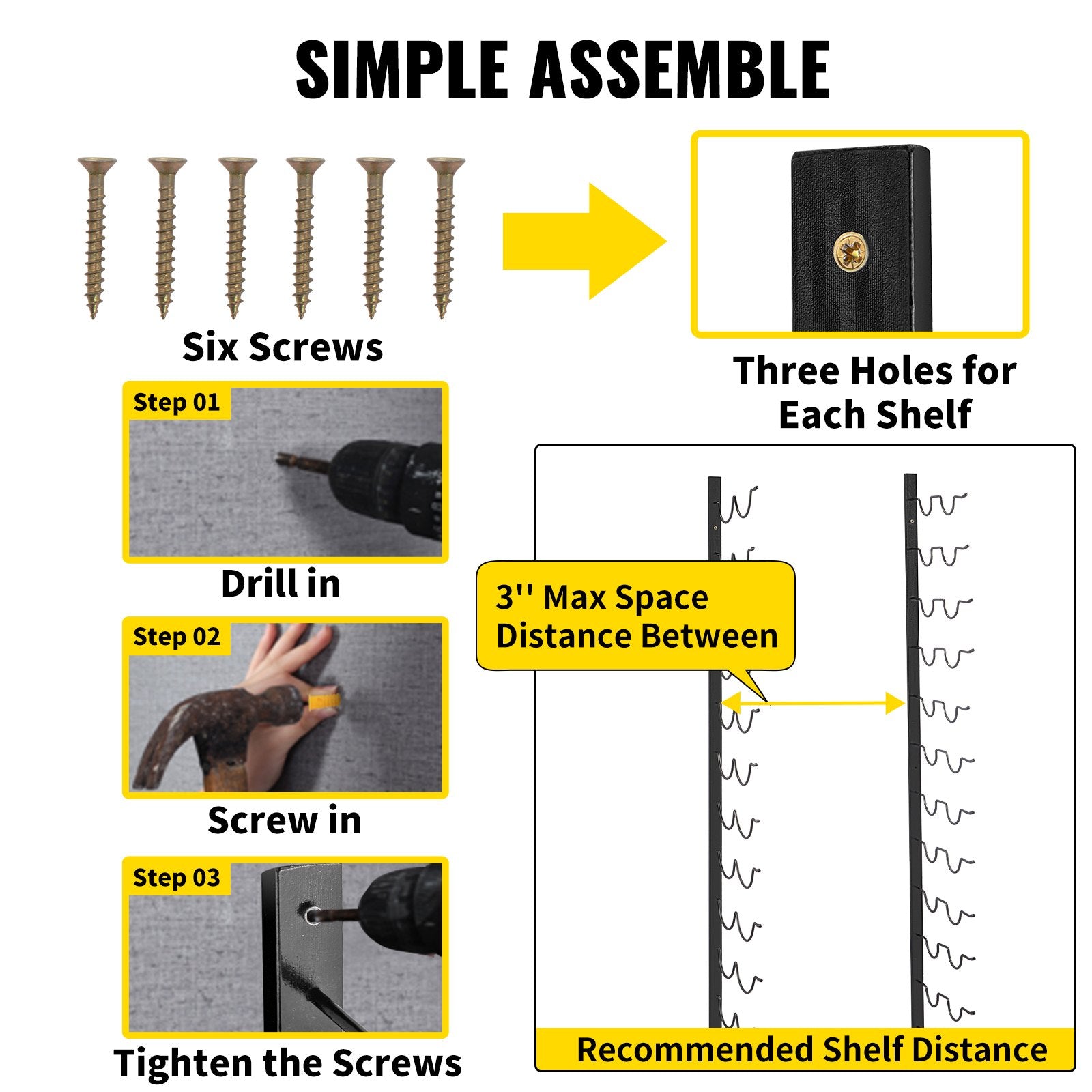 EASY INSTALLATION - This wine rack kit includes 6 screws for easy, hassle-free installation. There are three holes separately in the two shelves. Just drill holes, tight screws in the wall, then fix the wine rack with screws and make sure they are in the same direction. The installation is down. A few minutes is all you need.