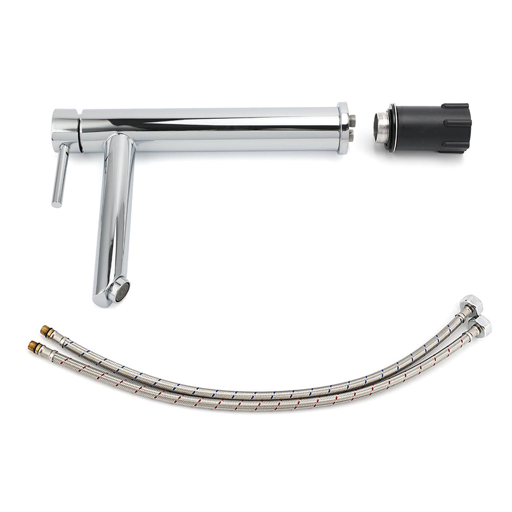 - Fixing screw kit and 2 braided stainless steel inlet hoses are included in the package
