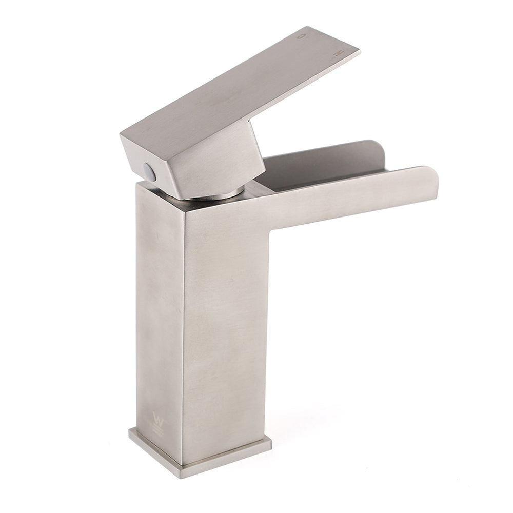 WELS Brushed Nickel Cubic Square Basin Mixer Waterfall Faucet Vanity Laundry Tap