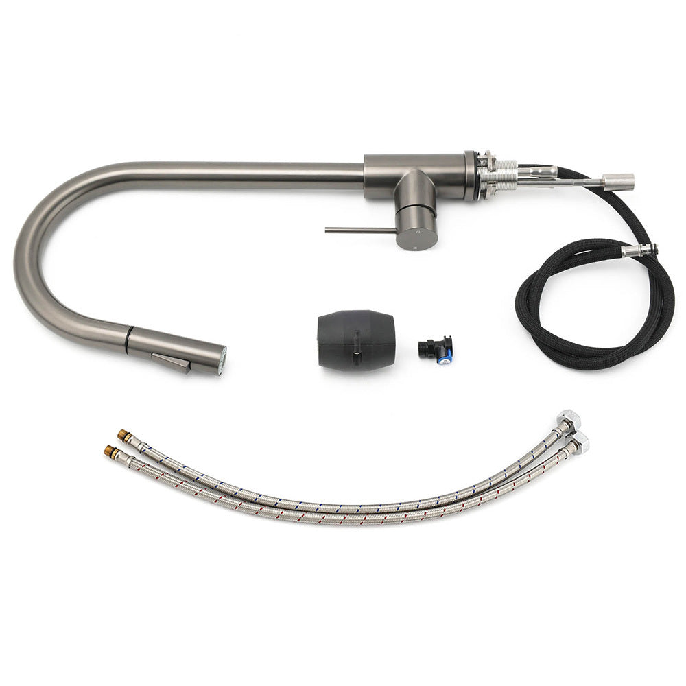WELS Gun Metal Pull Out Kitchen Sink Tap Basin Mixer Faucet Flexible 2 Way Spout