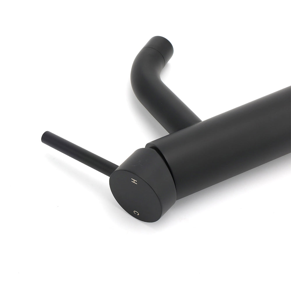WELS Kitchen Laundry Round Standard Basin Mixer Vanity Sink Faucet Tap Black Set