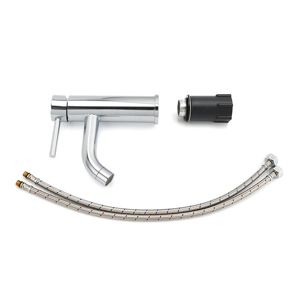 - Fixing screw kit and 2 braided stainless steel inlet hoses are included in the package